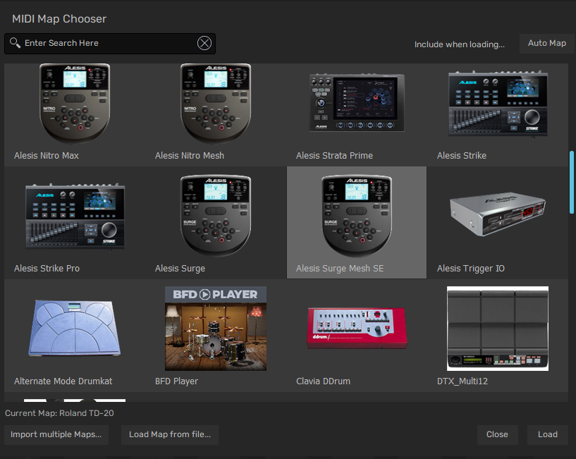 Note that when you load the new key map, it may ask to overwrite the file, if you do so, the Alesis Surge Mesh SE file will appear as listed above. If you do not overwrite the keymap file, it will be listed as a keymap without a module icon.